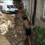 French Drains offer an alternative solution for those customers not wanting or unable to install a soakaway at their property. Using new PVC pipework the surface water is directed away from the property and into perforated pipework buried underground. The trench in which the perforated pipe sits, is lined with a barrier material and the pipework set central, surrounded by 20mm clean stone and buried. The stone allows the water to disperse into the ground more efficiently, eliminating Damp caused by standing water around the property.